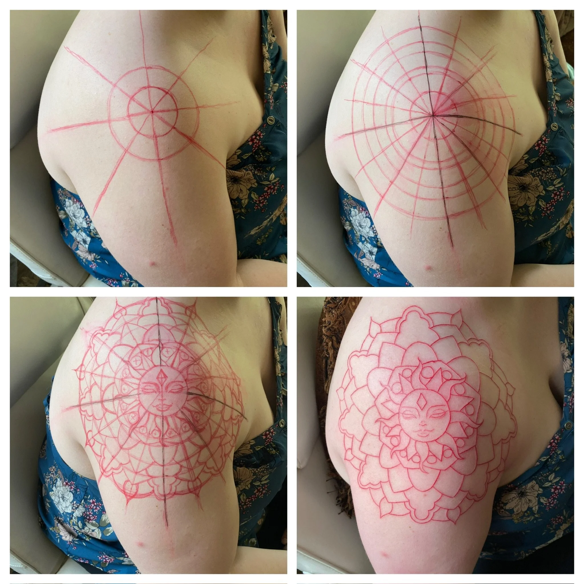 A mandala tattoo session begins long before the machine ever touches your skin. Expect a detailed prep phase that ensures precision, safety, and personalization.