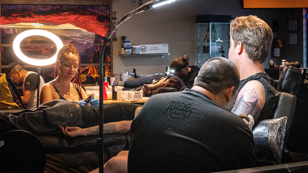 If you’d like to reserve time with one of our artists during a convention, simply call, text, or fill out our Tattoo Inquiry Form. Be sure to include the convention name and dates, and we’ll do our best to make the magic happen.